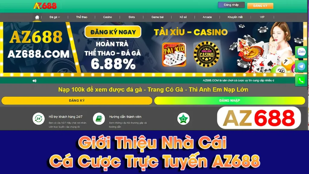 AZ688 Trang Cá Cược Trực Tuyến Hàng Đầu Châu Á có hơn 10 năm kinh nghiệm hoạt động, là một trong những công ty game an toàn, chất lượng cao và uy tín hàng đầu tại Việt Nam hiện nay. Đến nay đã có hàng trăm nghìn hội viên đăng ký.