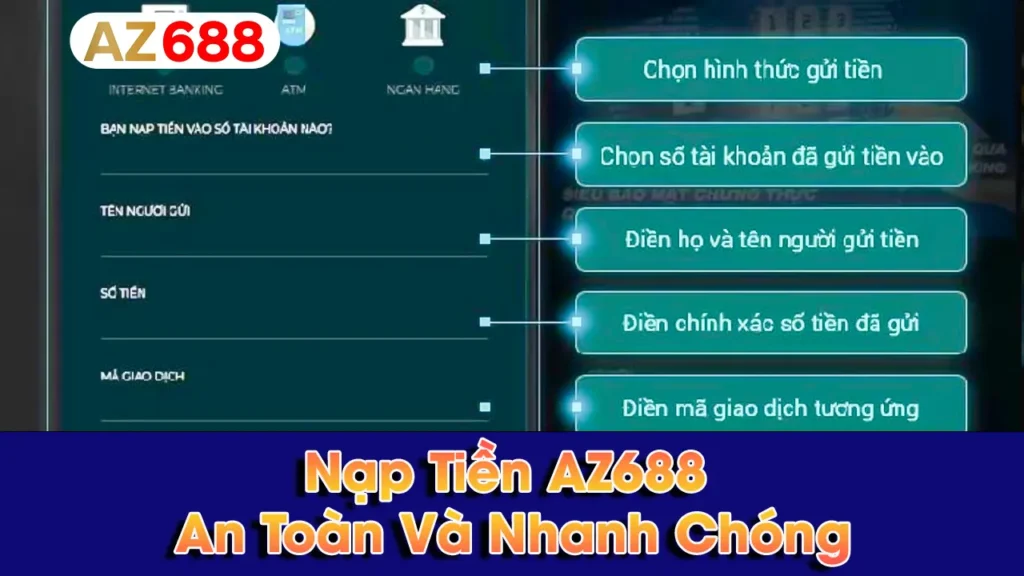Nạp tiền Az688 là một bước không thể thiếu để giúp bạn có thể thoải mái khám phá kho game đa dạng đặc sắc tại nhà cái này, và có thể tham gia đặt cược một cách dễ dàng. Cùng tìm hiểu qua bài viết này nhé!
